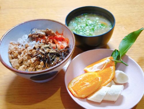 お昼は玄米ご飯か