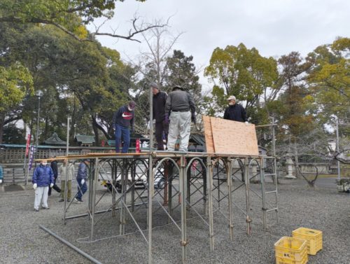 午前中に持ち投げをするやぐらを組んだんやけど