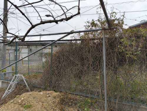 長年フェンスに張り付いた枝を