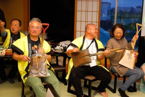 スコップ三味線を体験