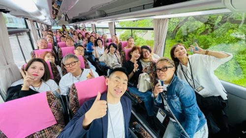 移動中のバスの中では