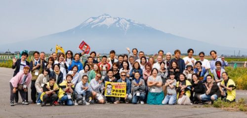 岩木山をバックに記念写真