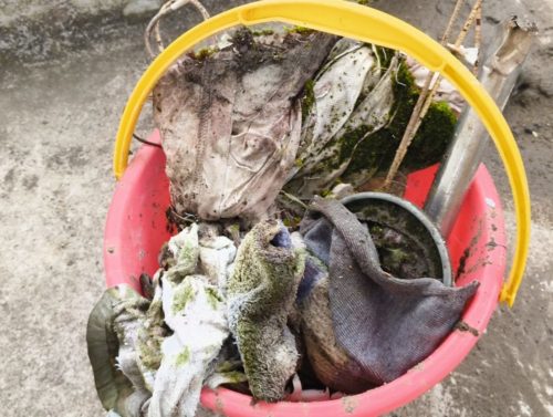 バケツで受けた